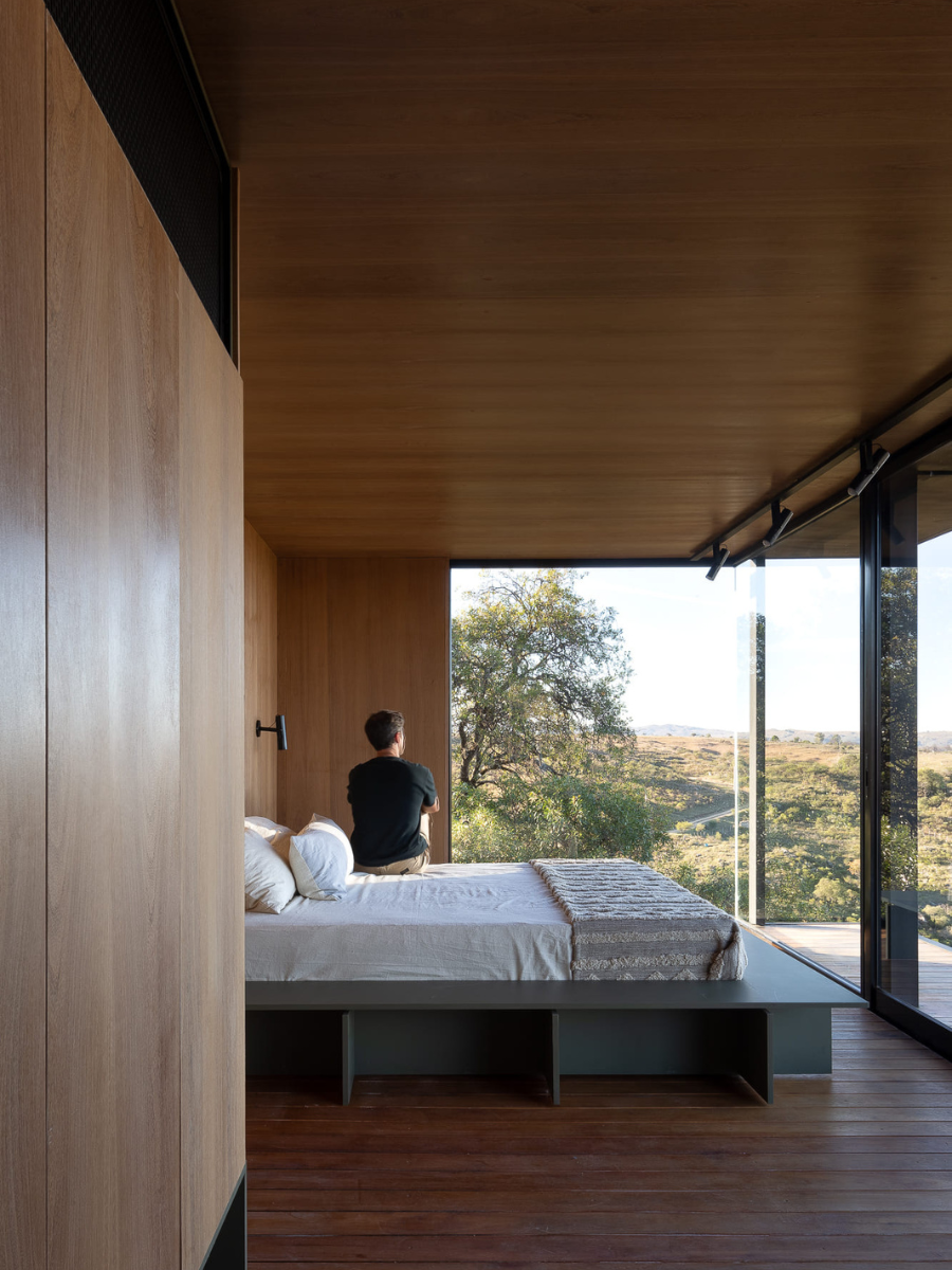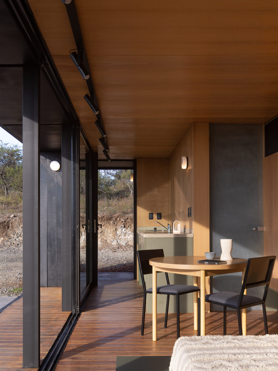 Para este proyecto se consideró que la respuesta arquitectónica debía ser mínima: un conjunto de habitáculos de superficie acotada, que con una oportuna austeridad logre insertarse en el entorno allí existente, brindando al usuario un confort “suficiente”. El resto ya estaba allí presente.
