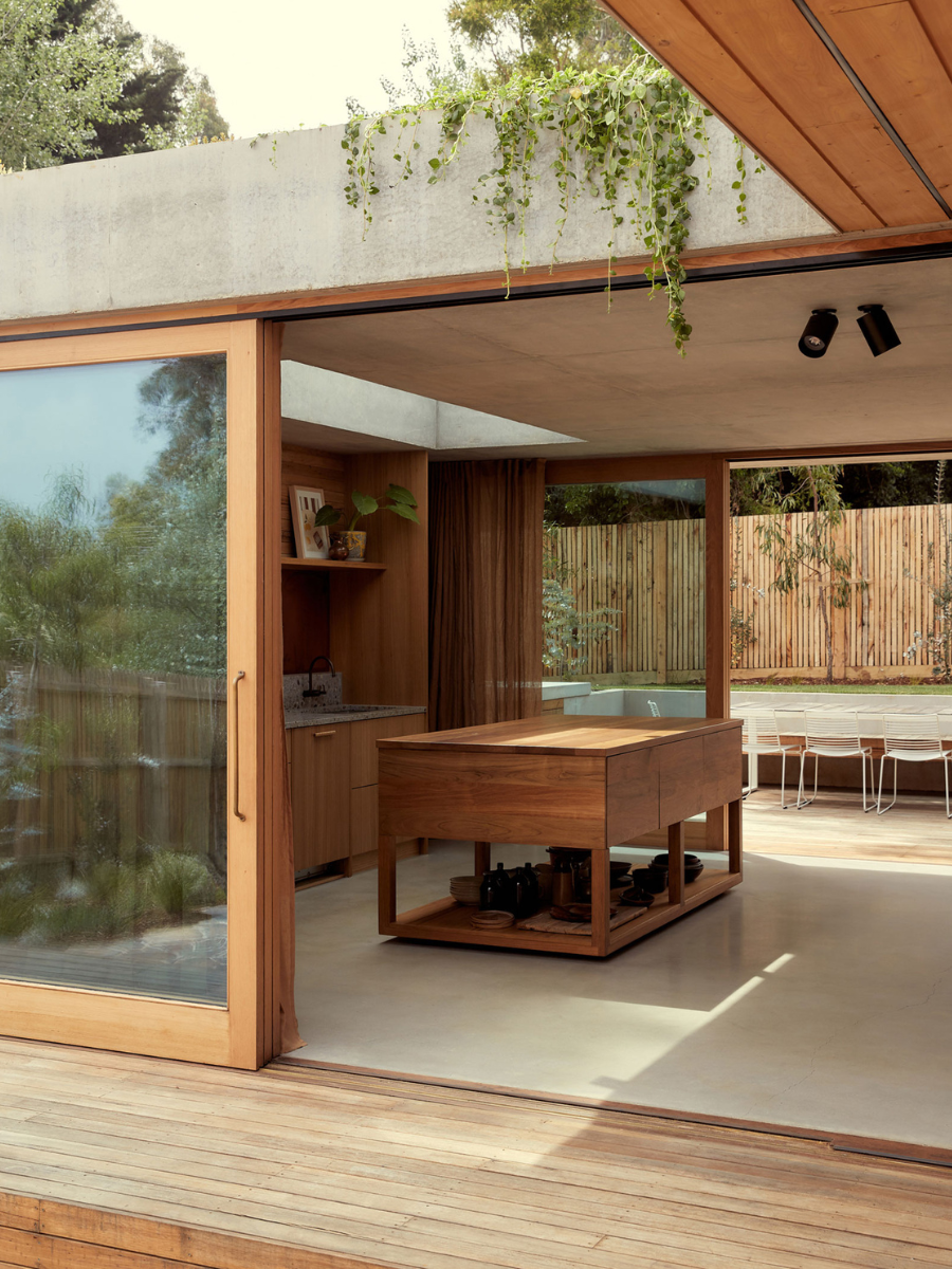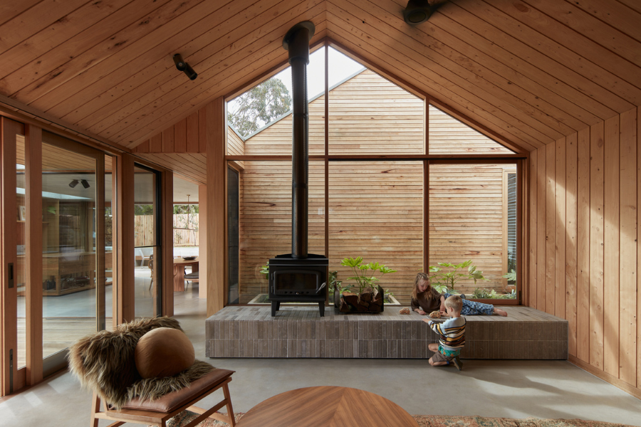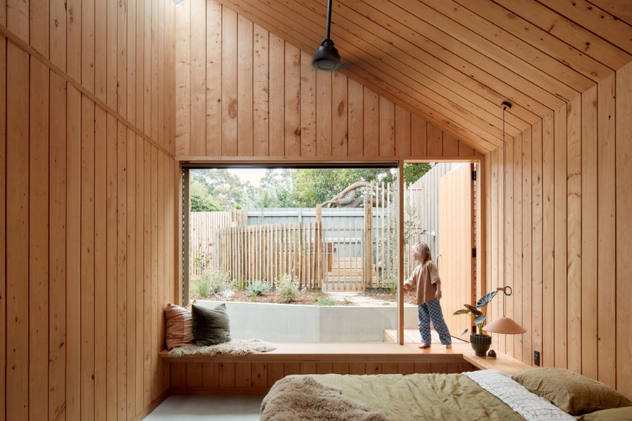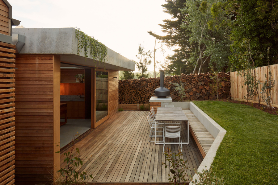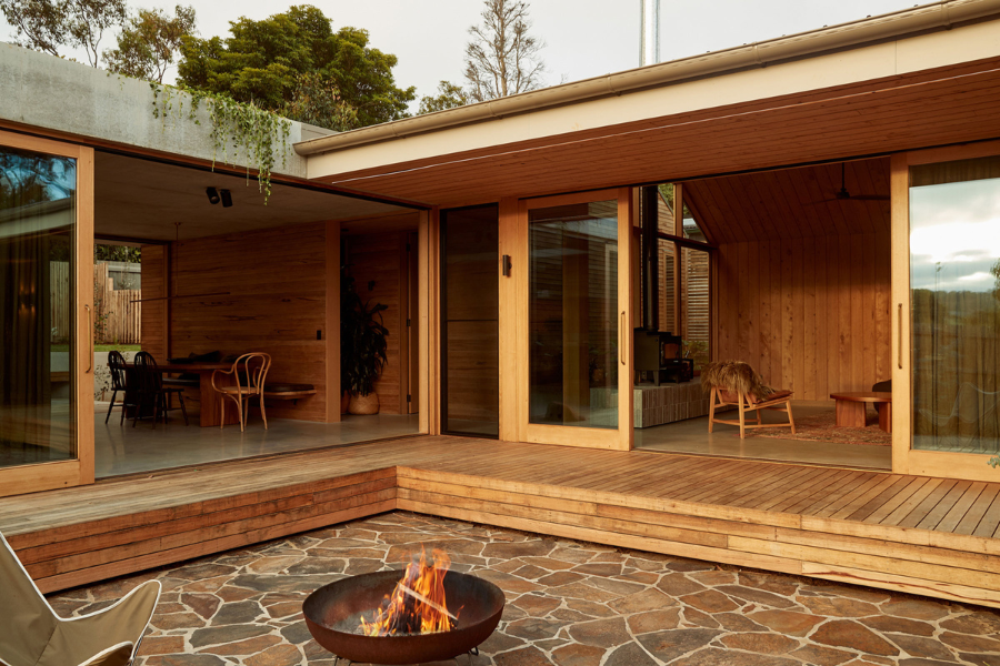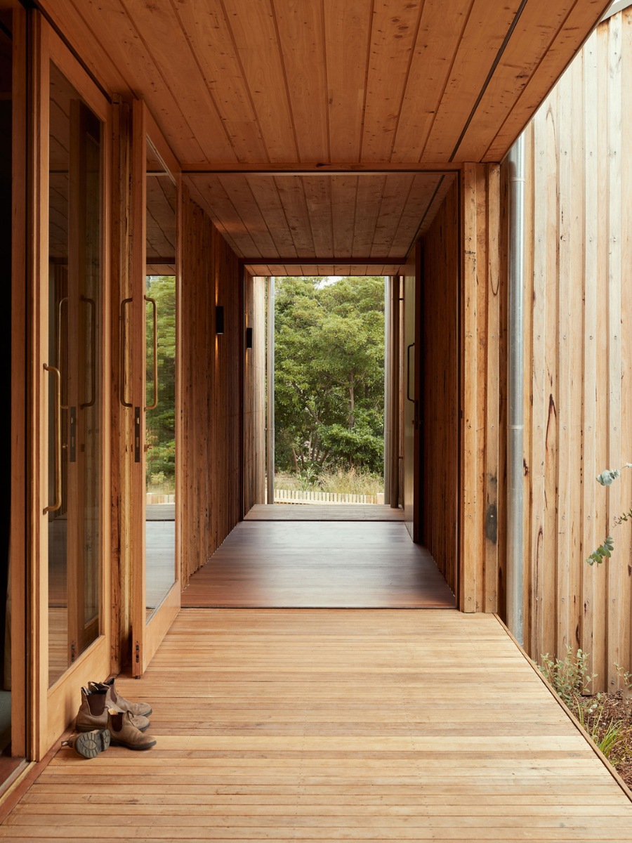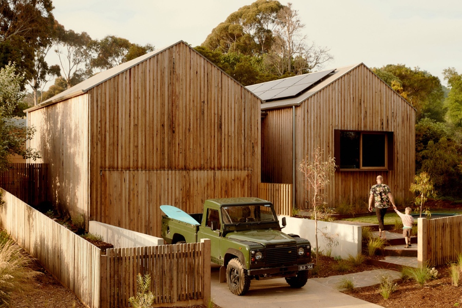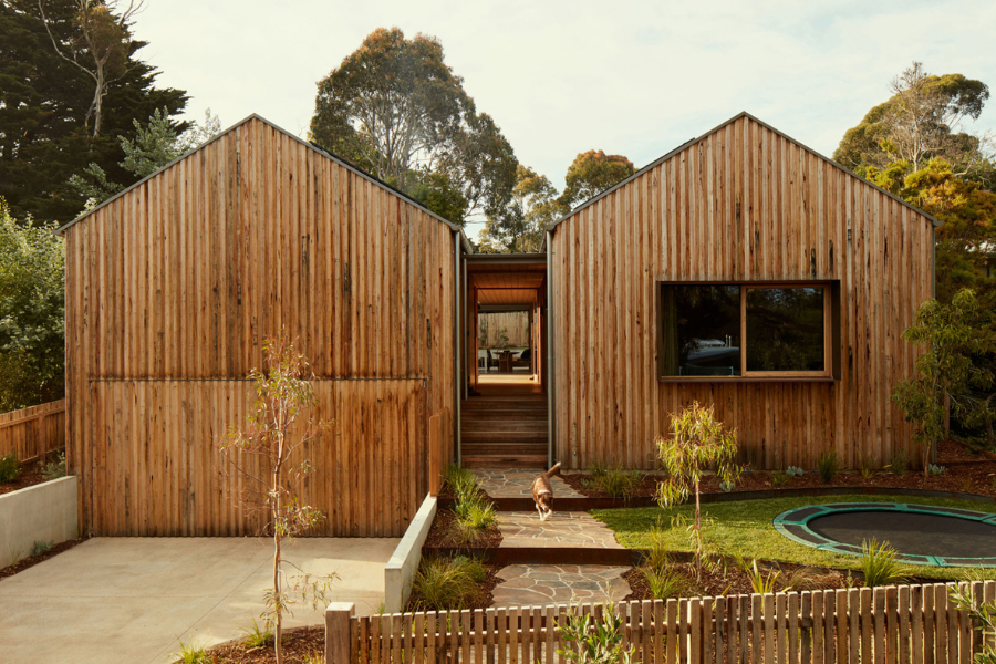 En la península de Mornington, en Australia, se encuentra Little More House, una casa diseñada por MEGArchitects que demuestra que no hace falta construir en grande para crear algo especial. La vivienda está formada por cuatro volúmenes conectados por un pasillo central que funciona como columna vertebral. Esa distribución hace que, a pesar de ser una casa compacta, se sienta abierta, cómoda y con una fuerte relación con el entorno natural. La idea principal es sencilla: menos metros, más calidad de vida.