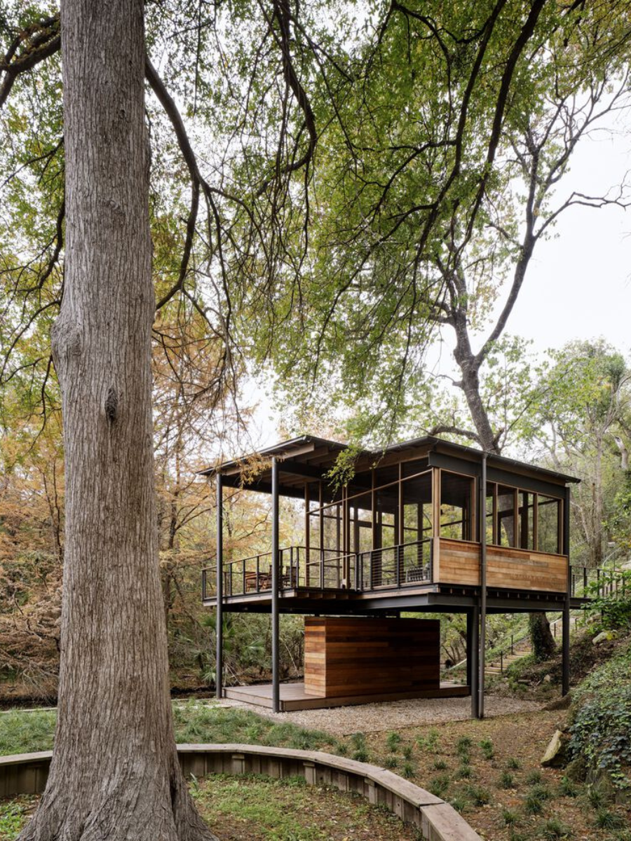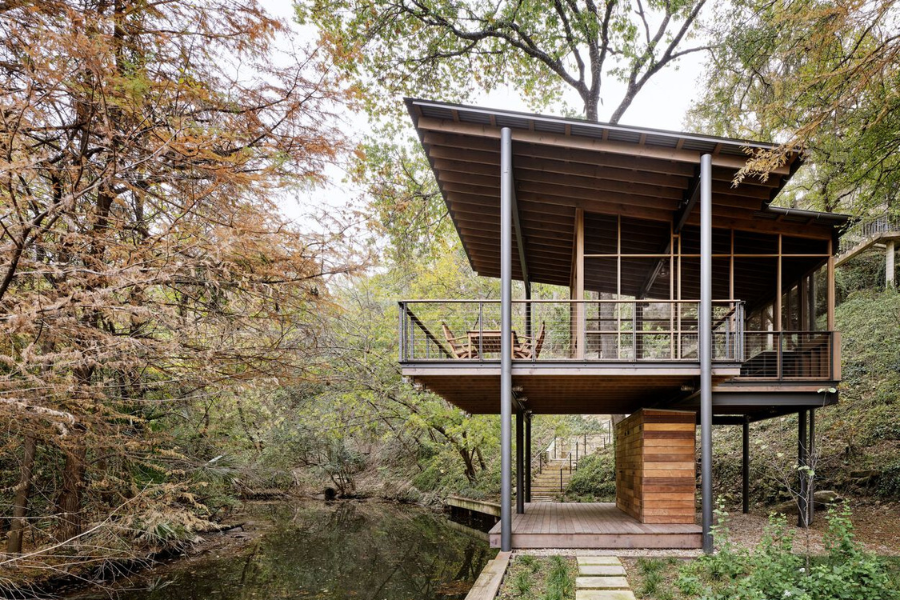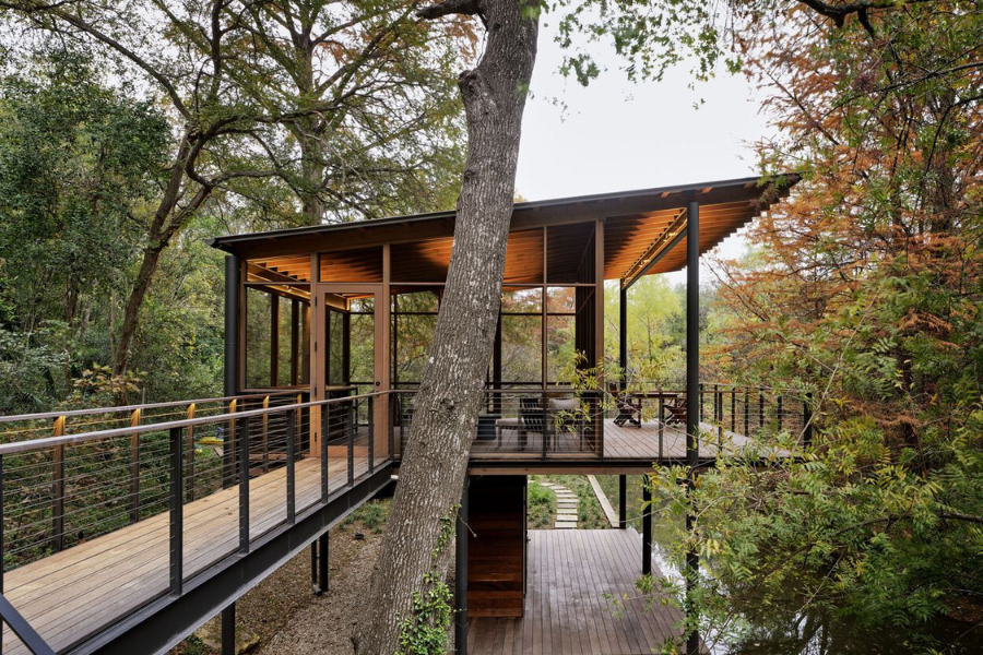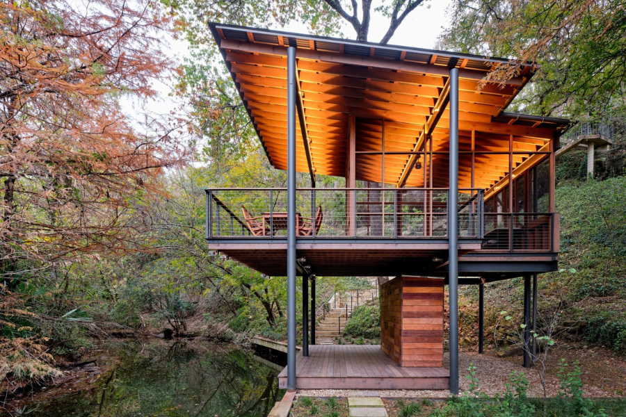 Diseñada por Furman + Keil Architects, la Plataforma de descanso, o Roost, como se titula oficialmente, es una intervención arquitectónica mínima en un contexto natural de alto valor ecológico. Ubicada en un humedal protegido de Austin, Texas, esta estructura elevada redefine lo que entendemos por arquitectura ligera, resiliente y profundamente enraizada en el sitio, no desde lo masivo sino desde la sutileza estructural.